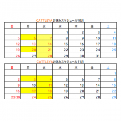 いつもCATTLEYA美容室を ご利用いただきありがとうございます☻10月11月のお休み表です。黄色…
